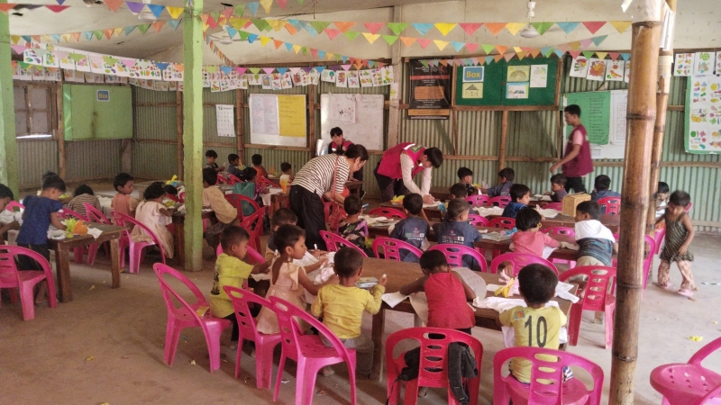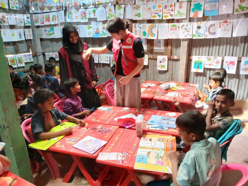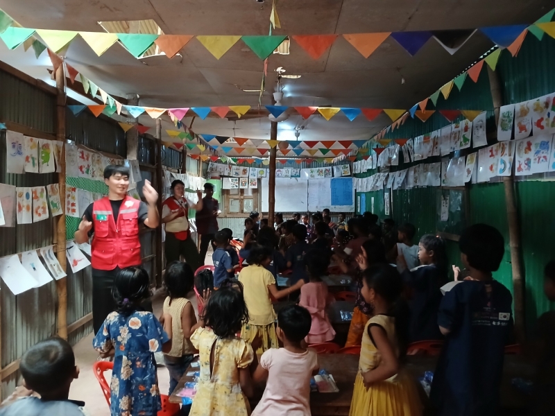 이 기간 단원들은 사업장 등록 고아 아동들을 대상으로 율동 및 음악 교실, 과학교실, 보건위생 실습, 티셔츠 꾸미기, 한글교실 등 다양하고 재미있는 활동들을 진행하면서 희망이 없이 고단한 삶을 이어가고 있는 로힝야족 난민 고아 아이들을 위로하고 사랑으로 품어 주었습니다. 이외에도 단원들은 사업장 외벽에 어린이들의 정서 함양을 위해 아름다운 그림도 그려 주었으며, 난민들의 생활을 이해하기 위한 마을 답사도 진행하였습니다.