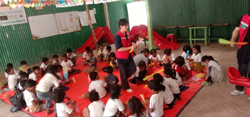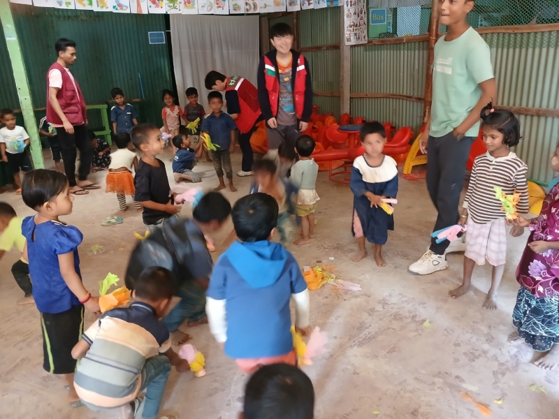 이 기간 단원들은 사업장 등록 고아 아동들을 대상으로 율동 및 음악 교실, 과학교실, 보건위생 실습, 티셔츠 꾸미기, 한글교실 등 다양하고 재미있는 활동들을 진행하면서 희망이 없이 고단한 삶을 이어가고 있는 로힝야족 난민 고아 아이들을 위로하고 사랑으로 품어 주었습니다. 이외에도 단원들은 사업장 외벽에 어린이들의 정서 함양을 위해 아름다운 그림도 그려 주었으며, 난민들의 생활을 이해하기 위한 마을 답사도 진행하였습니다.