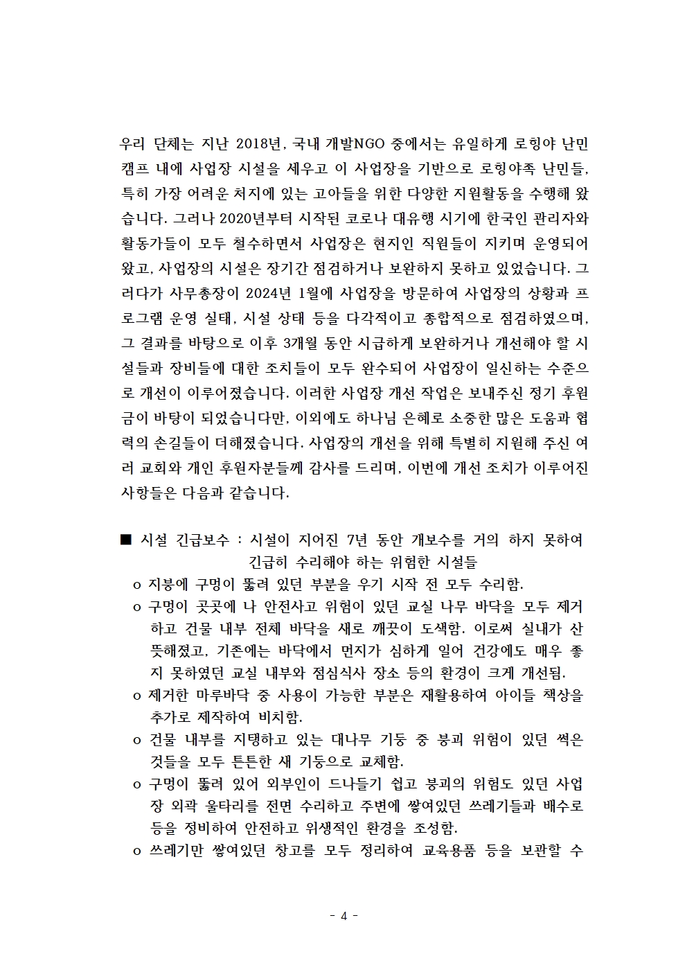 후원자 여러분들의 소중한 후원 덕분에 2024년 해당 사업들을 진행하였습니다.
