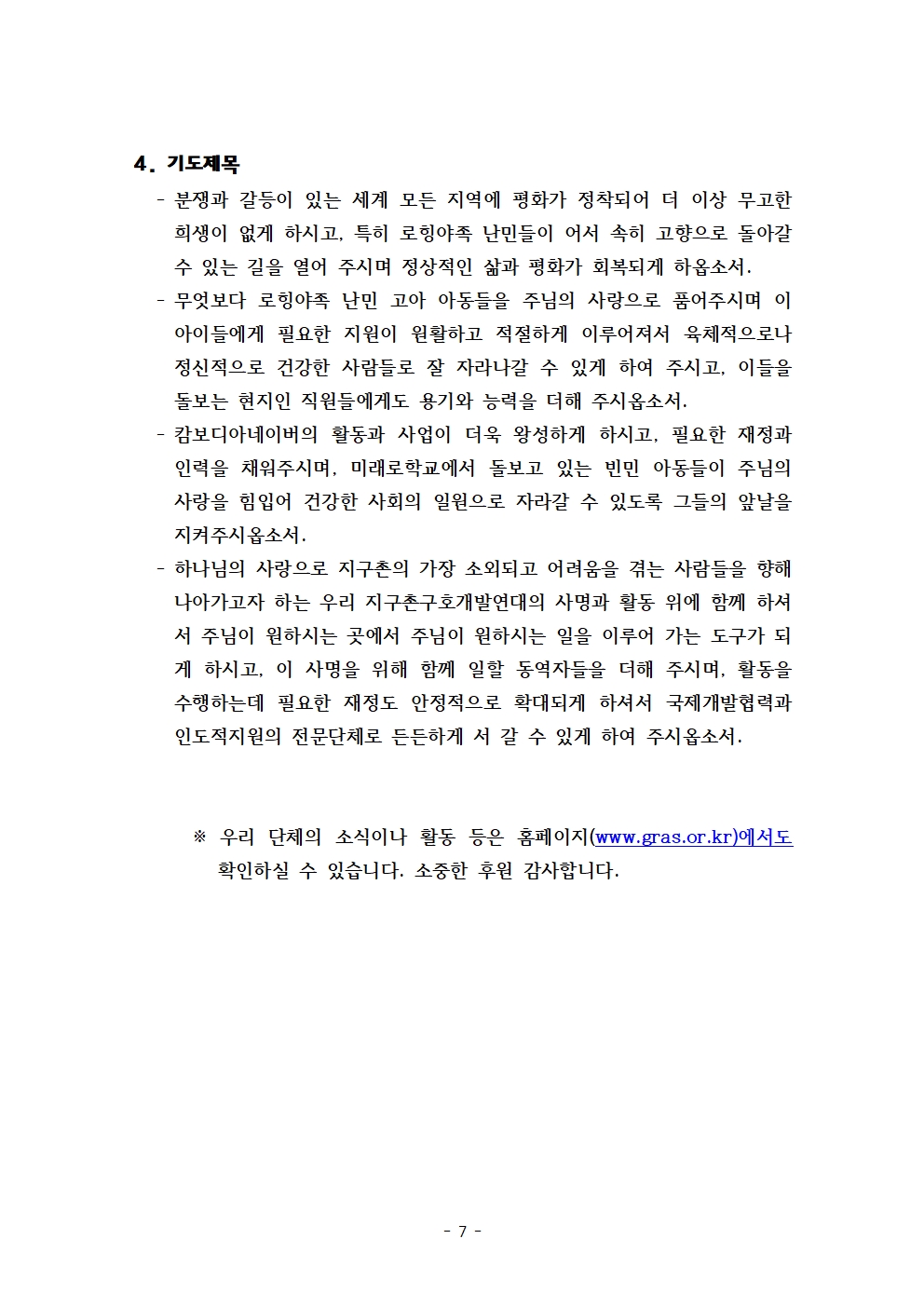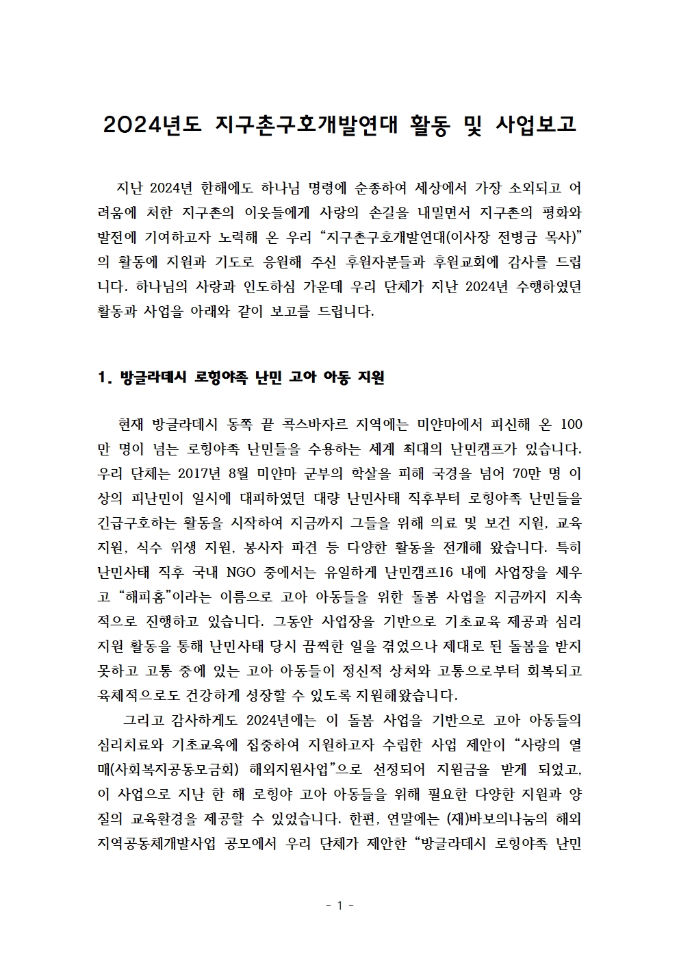 서울특별시 종로구 대학로 19 기독교회관 604호 (사)지구촌구호개발연대  대표자 : 전병금